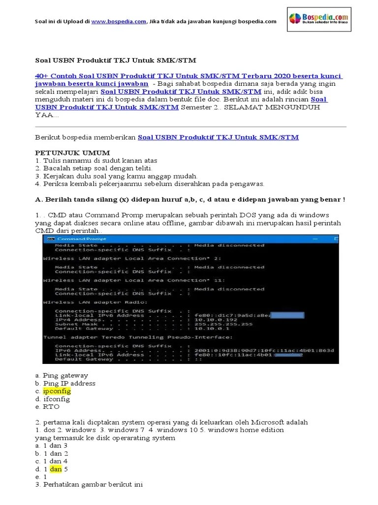 Latihan soal dan kunci jawaban usbn tkj 2020 dasar program keahlian pdf download.